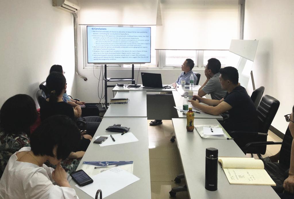 报告结束后,朱宇教授就相关学者提出的疑问也做了一一的解答,耐心的回答了提问者诸如关于为何OLS会显著低估教育收益率、为何女性收入回报率会低于男性等问题。