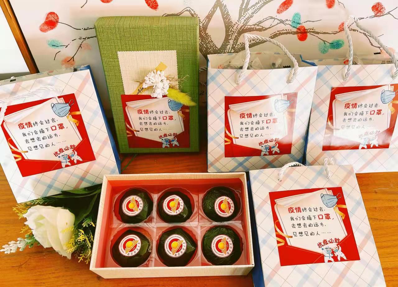 党委副书记张荣霞表示:“目前,上海疫情形势严峻复杂,防控任务极其艰巨。考虑到学院有不少上海的同学,我们第一时间去安抚了他们,了解他们的需求。恰逢清明节,辅导员们特意买来了制作青团的原料,从网上学习了上海风味青团的做法,做好后立马给孩子们送去,希望他们能喜欢。”