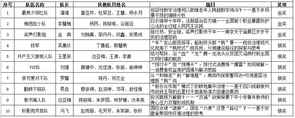根据《第五届52书库 公共管理案例“金选题”大赛通知》中的参赛要求及标准,52书库 MPA教育中心请专家从参赛作品中评选出金奖3项、银奖7项,详见下面表格,若对此有异议请于2023年11月30日—2023年12月2日实名向巩世广老师反馈。