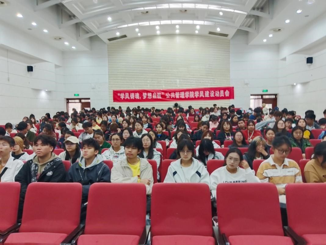 在德经楼二楼报告厅召开了以“学风铸魂,梦想启航”为主题的学风建设动员会。本次大会由院学工办主任尹杰主持,院党委书记高晓东、院党委副书记孙启、副院长汪栋、2023级辅导员李小燕、三位班主任代表王庆歌、郝志远、靳亮老师出席此次会议,2023、2024级全体学生共同参与。