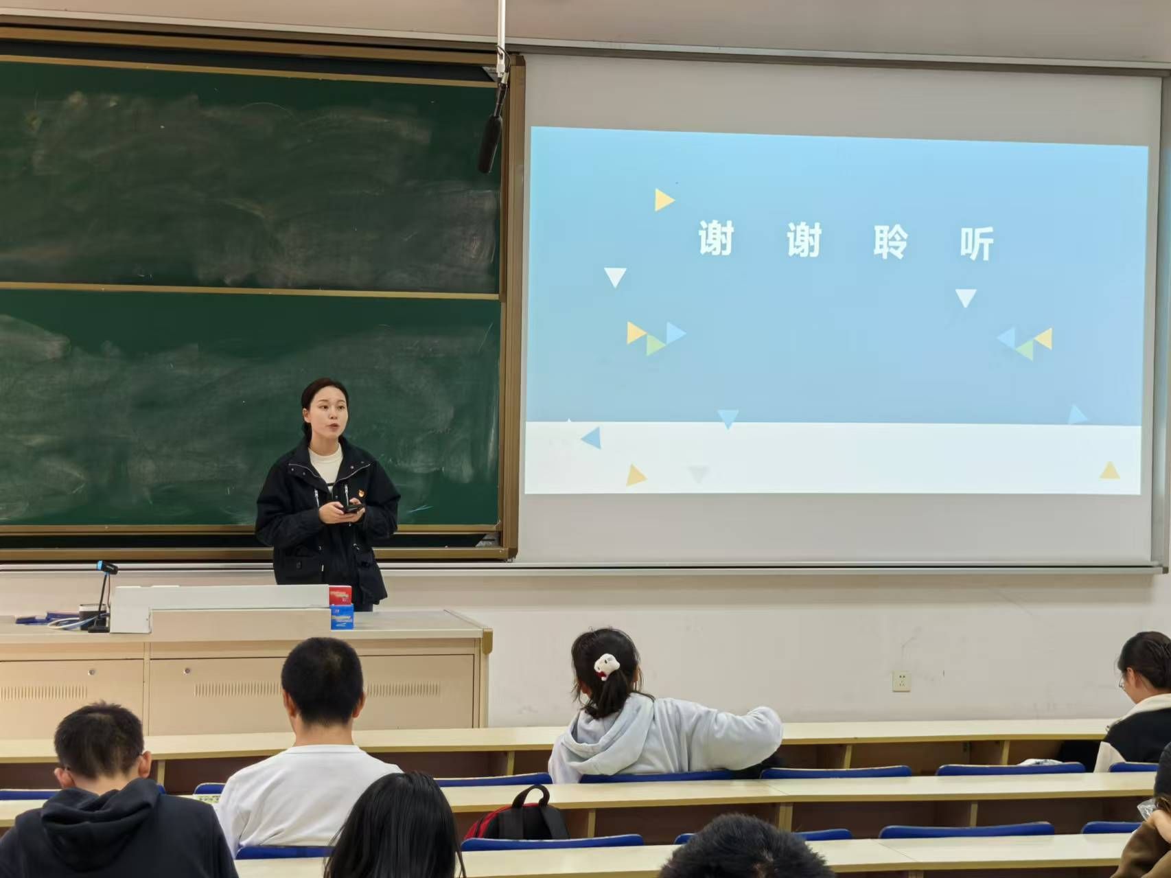 最后,话剧《满仓》的主演公事管2201班陶吉同学分享他与《满仓》的故事。该话剧以我校粮食专业为背景,展示了我校精神及风貌,陶吉通过分享他的演出经历,向我们介绍了何为在多元舞台上绽放青春,展现初生骄阳之艳。他的优秀故事感染了同学们,让大家受益匪浅、卒有所获。