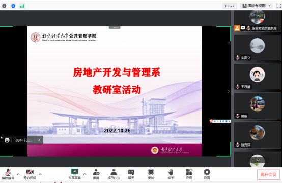 房地产开发与管理系围绕“如何有效推进毕业设计工作”这一议题开展了教研室活动,活动以线上形式在腾讯会议举行,由系主任张丽芳副教授主持。