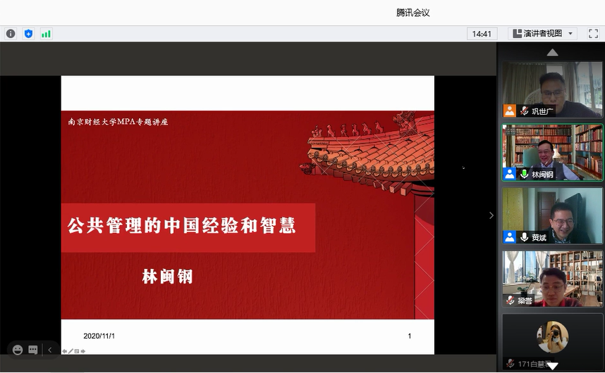 111日下午,南京大学社会保障研究中心主任、南京大学政府管理学院博士生导师林闽钢教授受邀为我校师生做了题为公共管理的中国经验与智慧的线上学术讲座,讲座由52书库 院长黄斌主持,52书库 部分教师、MPA研究生、学术型硕士研究生等聆听了讲座。