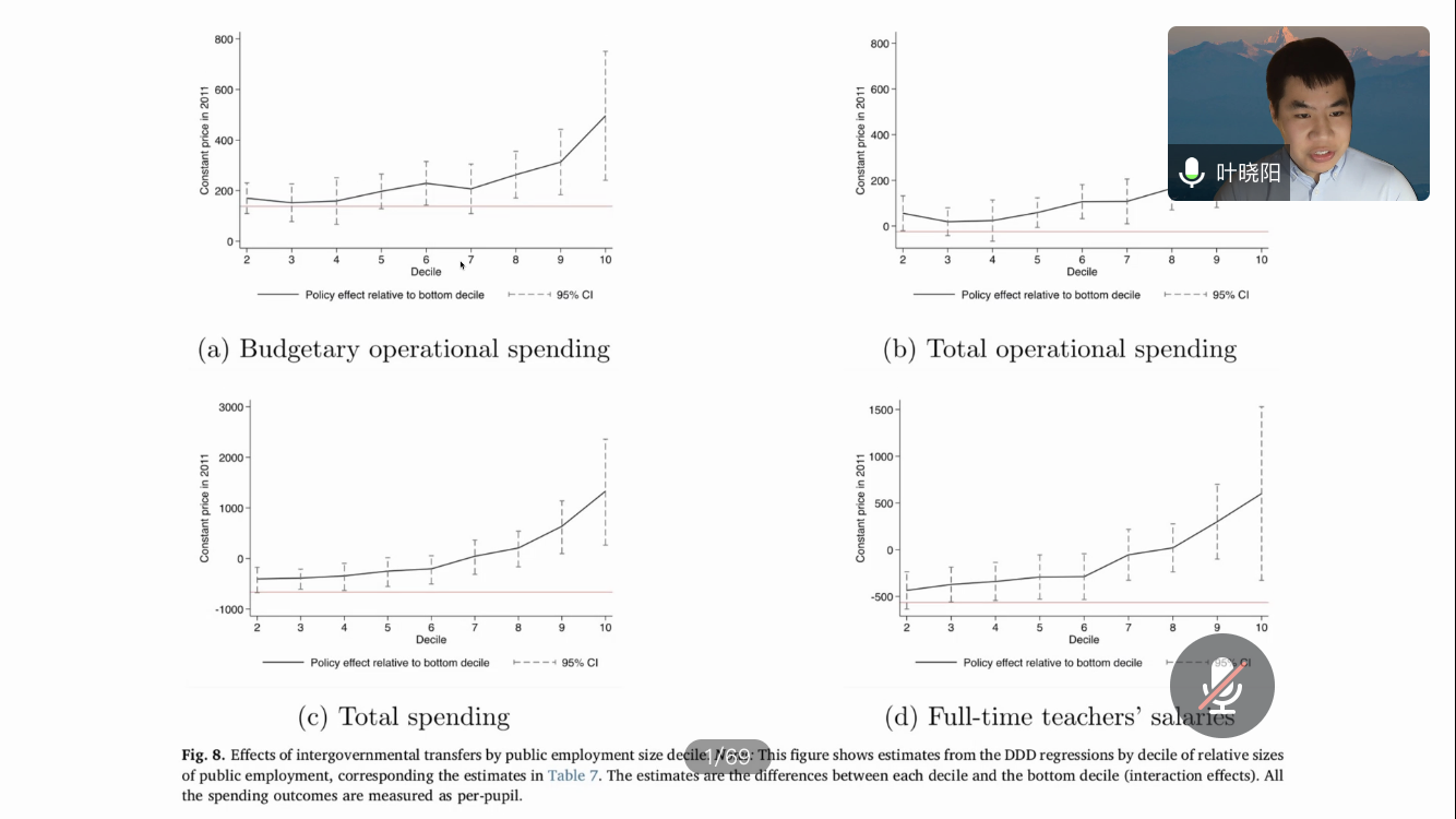 叶晓阳博士后基于自己对贵州威宁地区的调研结果,深入探讨了中国义务教育财政“新机制”改革的影响,并分享了其发表SSCI期刊的投稿历程。针对高考如何填报志愿这一热门话题,叶晓阳博士后根据自己近五年来的现场指导经验,将随机试验的结果进行建模分析,形成的论文在美国获得教育学领域论文一等奖。最后,基于教育经济学研究的热点问题和教育经济学者的职业发展规划等问题,叶晓阳博士后与线上参会者进行了热烈的互动交流。