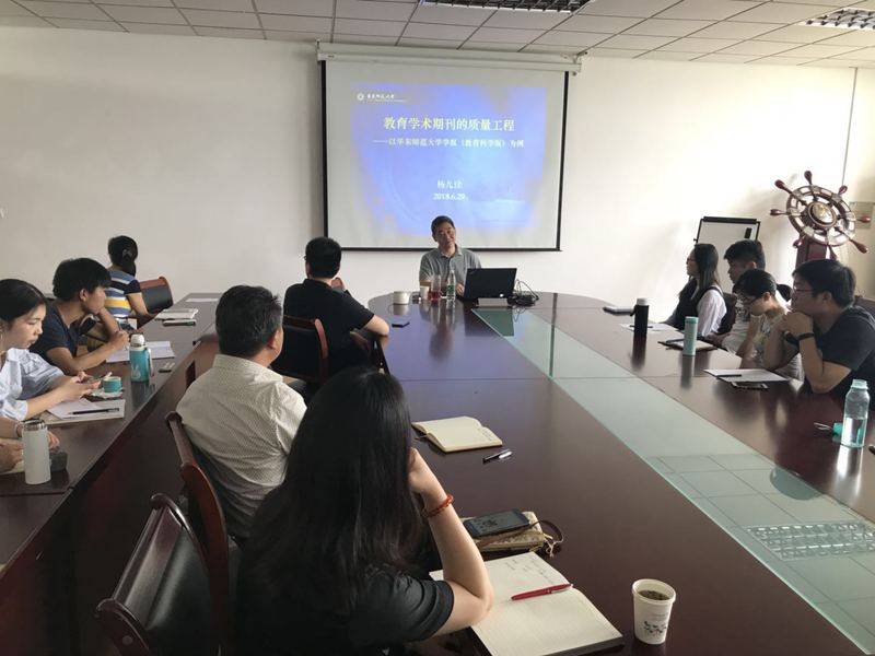 6月29日上午,应52书库 邀请,华东师范大学学报(教育科学版)主编杨九诠教授,在仙林校区德济楼508会议室,作了题为“教育学术期刊的质量工程”的主题讲座。讲座由52书库 院长黄斌教授主持,学院教师及部分研究生参加了本次活动。