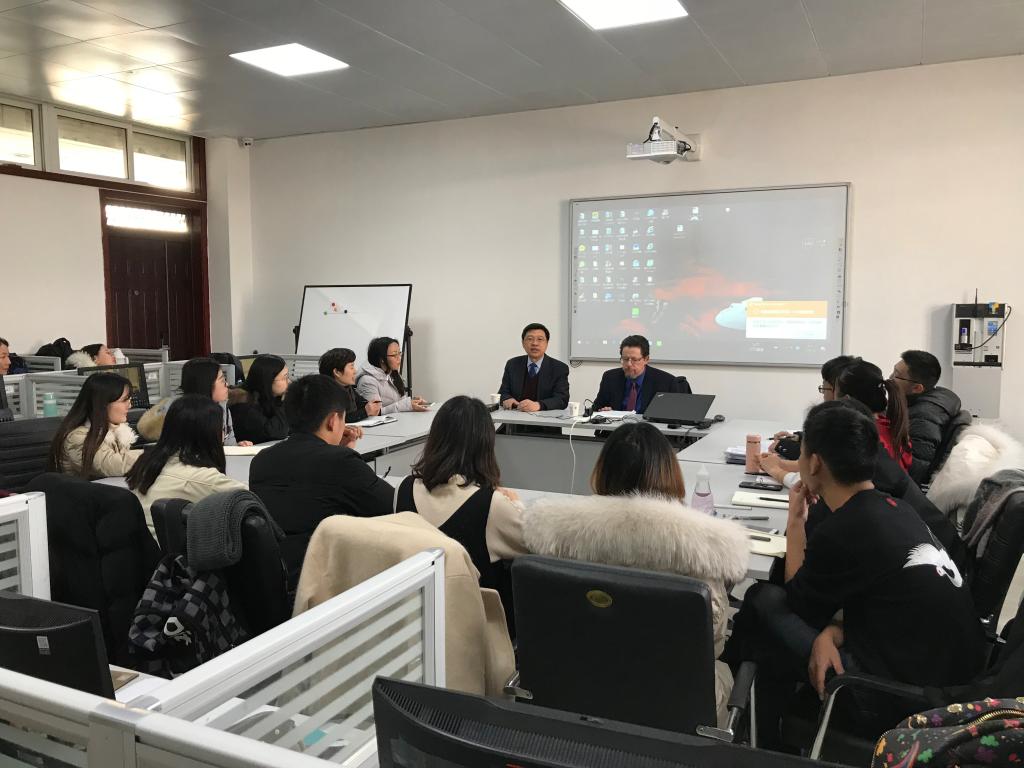 1月18日下午,应52书库 邀请,伊利诺斯-斯普林菲尔德大学公共事务与行政学院院长Robert Smith教授和美国克莱姆森大学中国研究中心主任胡晓波教授来52书库 讲座,主题为“The Trump Factor in American Politics and the International and Sino-US Relation”。讲座在52书库 研究生实验室举行,由院长黄斌教授主持,52书库 全体研究生和部分老师聆听了讲座。