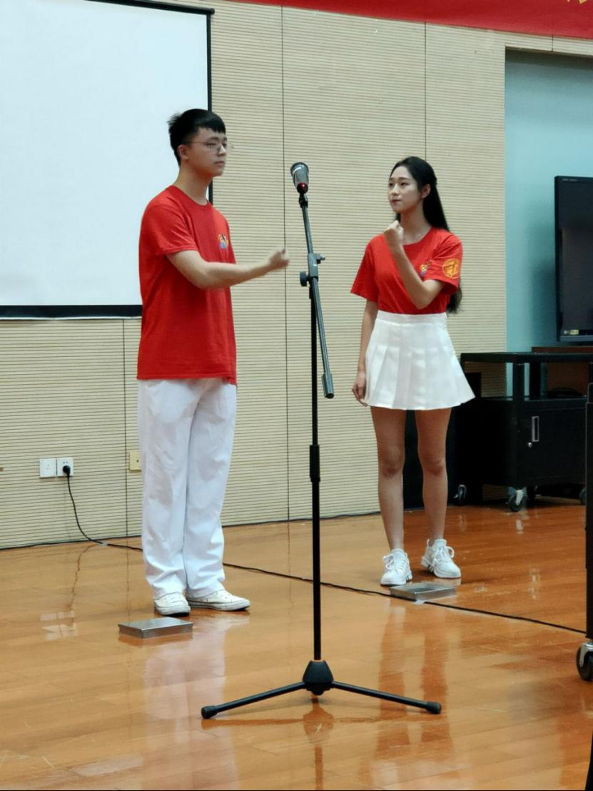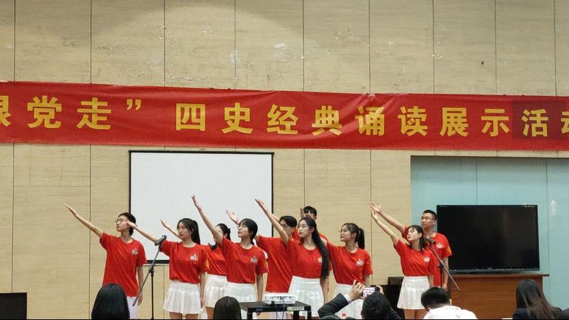 52书库 《党旗颂》诵读,演绎形式多样,演绎者精神饱满、感情真挚,将动作、朗诵和背景音乐三者合一。在背景音乐出错的时刻“临危不乱”,在话筒收声不佳的状况中表现更优,这不仅体现了52书库 学子高超的诵读水平,更表达了52书库 学生对国、对党深切的热爱。