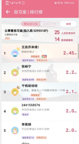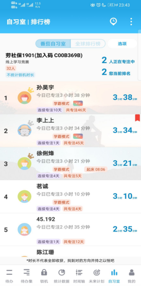 本着严于律己的目标,19级学生借助番茄To Do app 建立各个班级独属的自习室,让同学们互相监督激励,建立了良好的学习氛围。组织本次活动的李晓燕老师表示,把竞技风格引入学习,借助互联网信息化平台,用线上学习竞赛的方式让学生具有更强的学习竞争意识,人人都争当全场最佳的MVP,让学习更具激励性和竞争性。同时充分利用课余时间来巩固课上已学知识点,静下心来去思考,找出自己的困惑之处及时反馈。