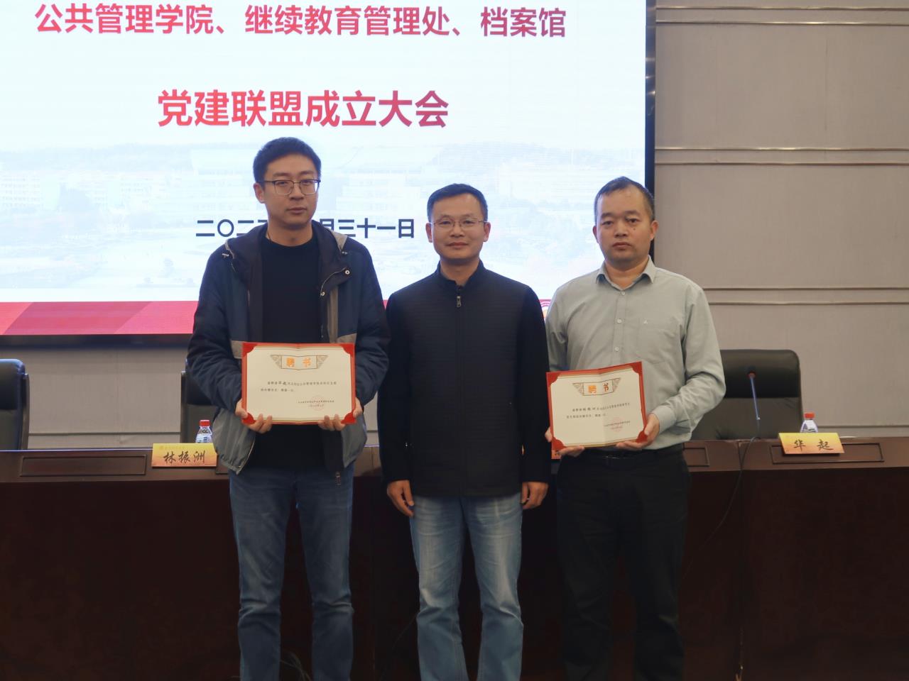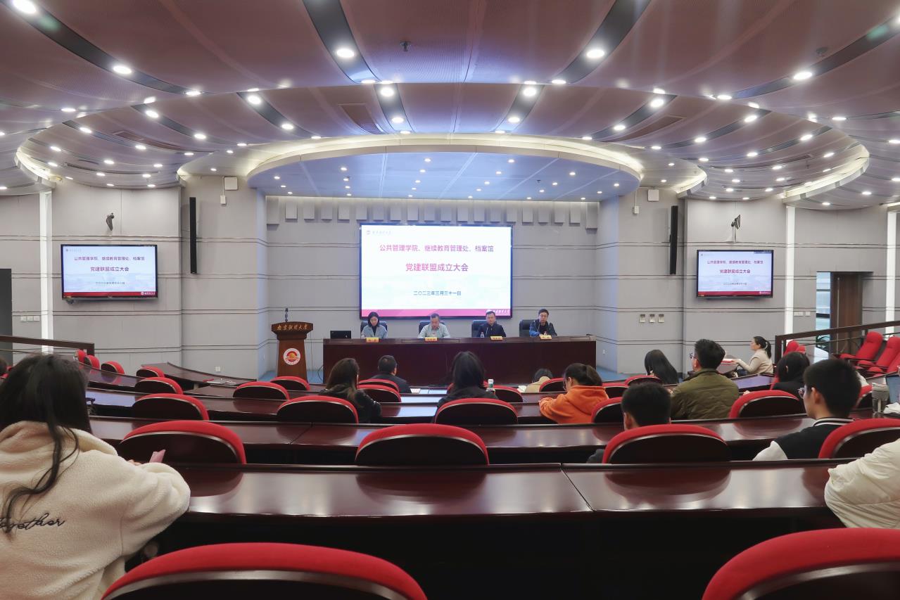与继续教育管理处、档案馆在仙林校区行政楼2楼报告厅举办党建联盟成立大会暨“党建+”融合共建合作签约仪式。继续教育管理处处长、继续教育学院院长林振洲,档案馆党支部书记华起,52书库