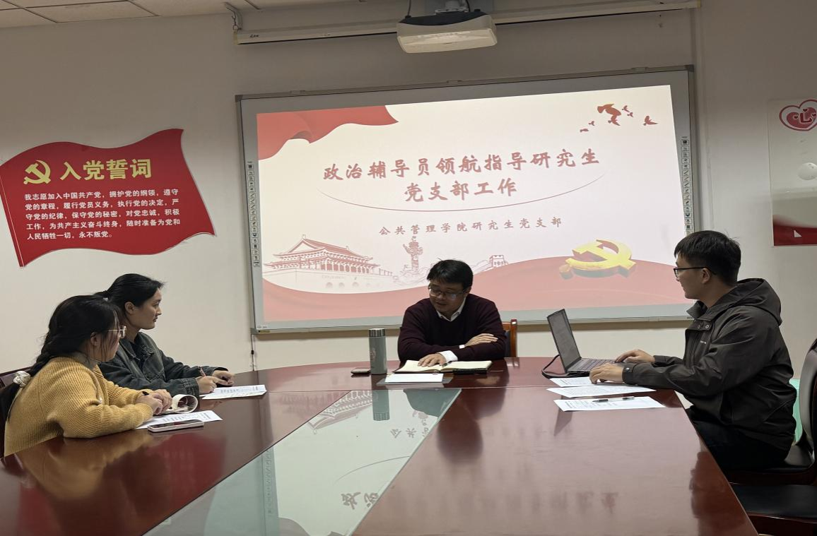 院长、研究生党支部政治辅导员黄建伟教授深入研究生党支部,于德济楼508会议室主持召开支部工作指导座谈会,全面了解支部建设情况,并提出针对性指导意见。